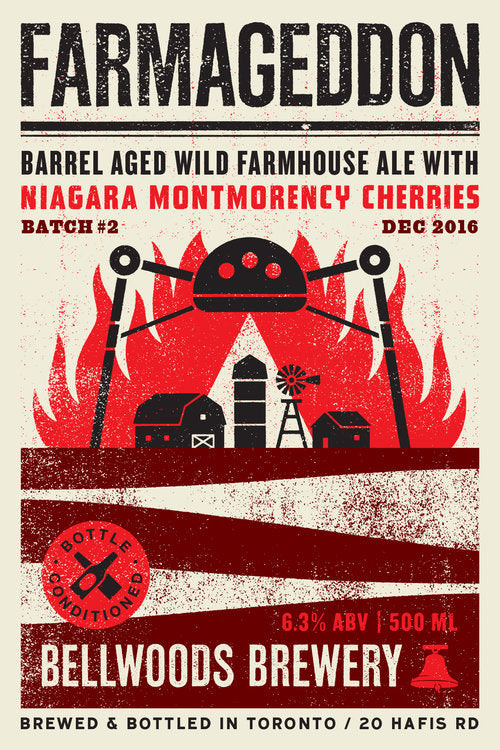 What it smells and tastes like: Fragrant Montmorency cherries beautifully wrapped up in a light, oaky and subtly tart wild farmhouse ale. Floral/spicy notes, with that characteristic brett funk we know and love in Farmageddon. Finishes dry.