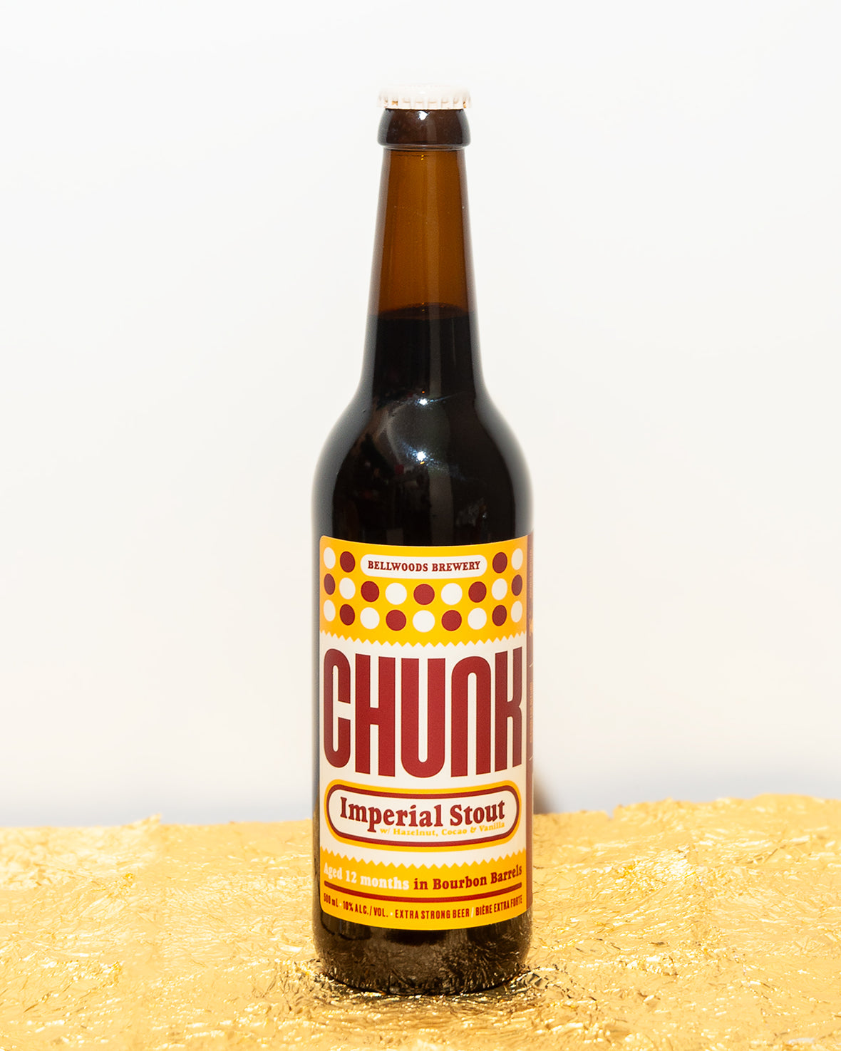 Aged in bourbon barrels for over a year, and dosed with a trio of cacao, hazelnut, and vanilla, CHUNK is an Imperial Stout that is heavily inspired by chocolate confections. And because we tend to be enthusiastic when it comes to adjuncts, it is also one of the most heavily augmented, concentrated, and rich sensory experiences one can seek out in the world of Ontario beer.