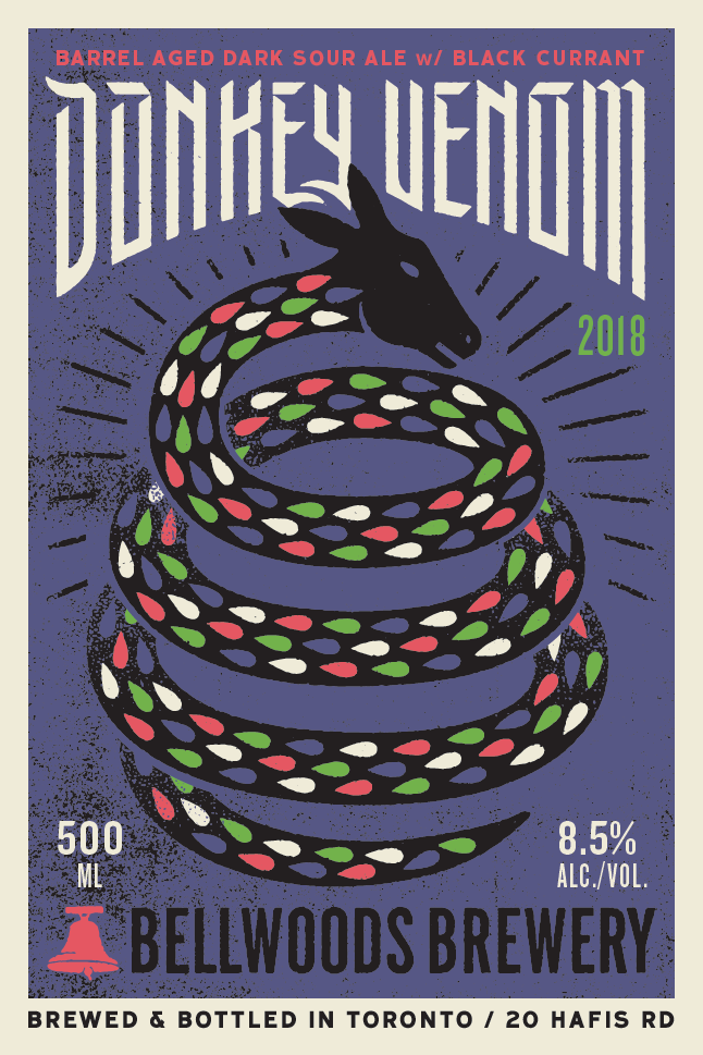 One of the first aged sours to leave oak at Bellwoods, Donkey Venom is a complex beer that we've brewed and blended many times over the years -- constantly subject to our relentless process of refinement. At its roots it's a rich, dark ale, but the time it spends in barrels with brett and bacteria harmonizes the ingredients, yielding bright levels of acidity and complimentary fruit flavours. A hybrid style of sorts, that defies simple categorization.