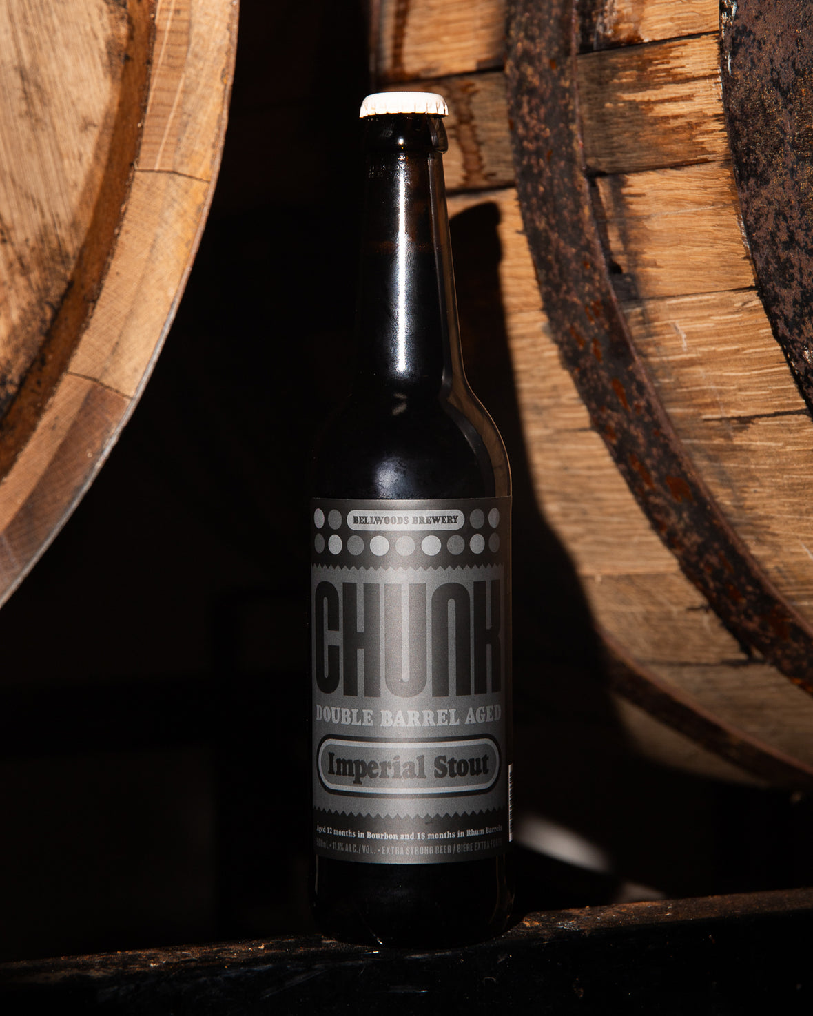 Double Barrel Aged CHUNK spent 12 months maturing in bourbon barrels before making its way into rhum barrels in April of 2023. That’s a full 30 months of bubbling and aging, resulting in a beer that is, quite simply, over the top.