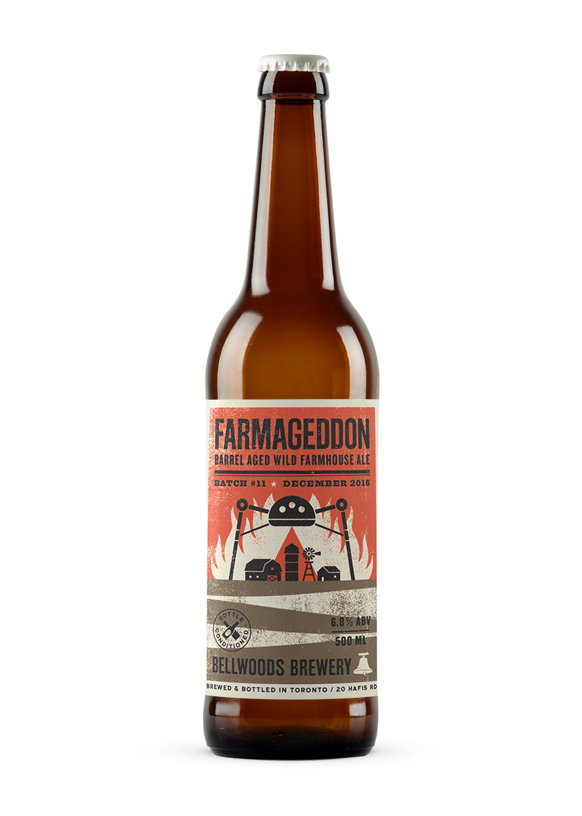 Farmageddon #11 is a 12-14 month blend of oak-aged, wild farmhouse ales. Batch #11 sees us drop the "Barrel Aged Brett Saison" descriptor formerly used for Farmageddon in favour of "Wild Farmhouse Ale" due to the range of microflora at play (a mixture of wild yeasts and bacteria), and the increase in tartness in this batch relative to those before it. The effervescent beer that hibernates in these bottles is a dynamic labour of love, changing and improving with time.