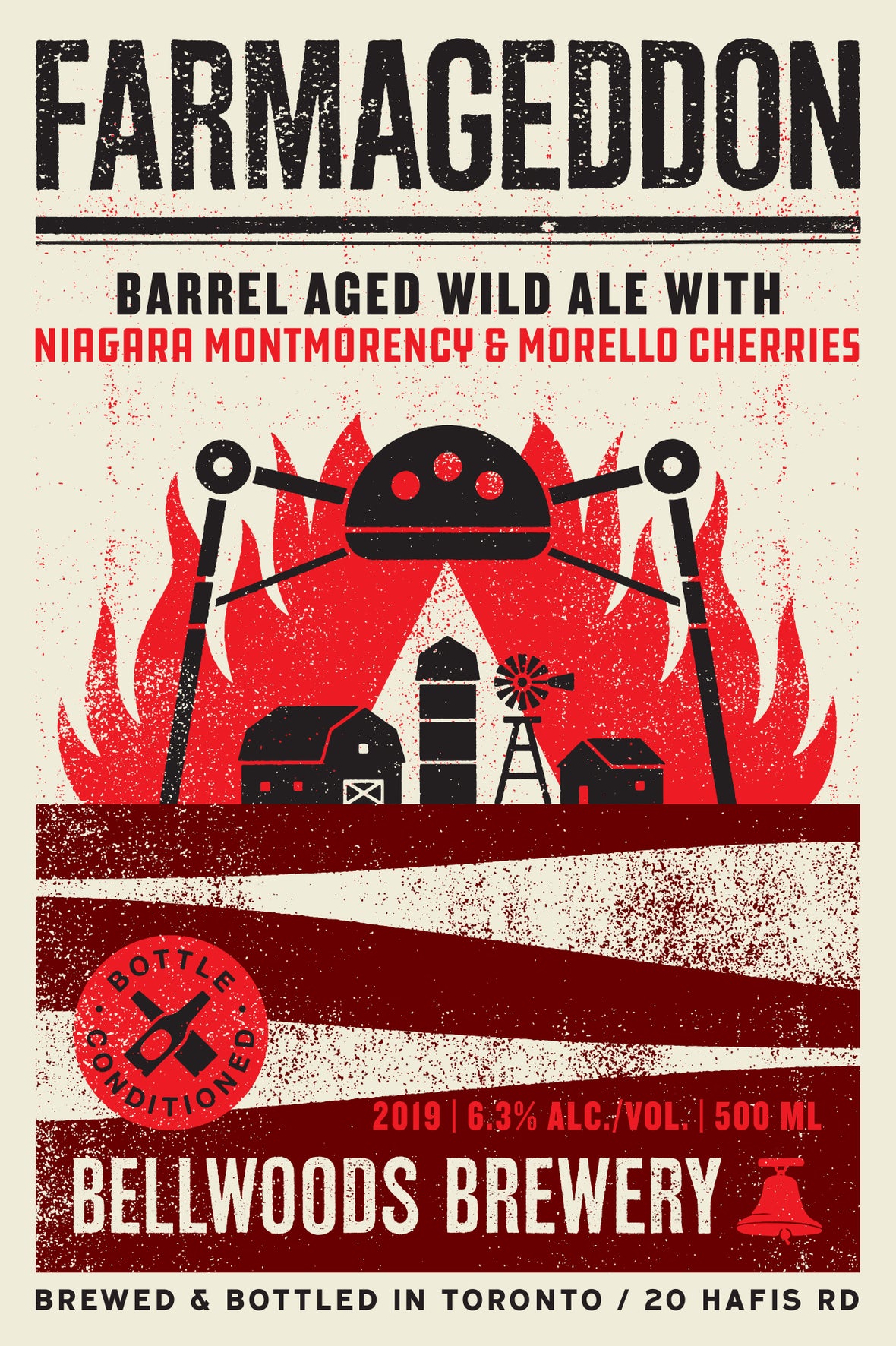 Our 2019 edition of Cherry Farmageddon is oak aged then conditioned on 2 types of sour cherry varietals -- Montmorency and Morello -- before being primed and bottle conditioned for maximum spritz factor.