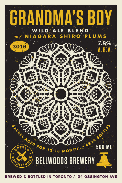 The third iteration of our beloved Grandma’s Boy, this ‘wild ale’ was barrel aged in oak with various strains of Brettanomyces and Niagara shiro plums.
