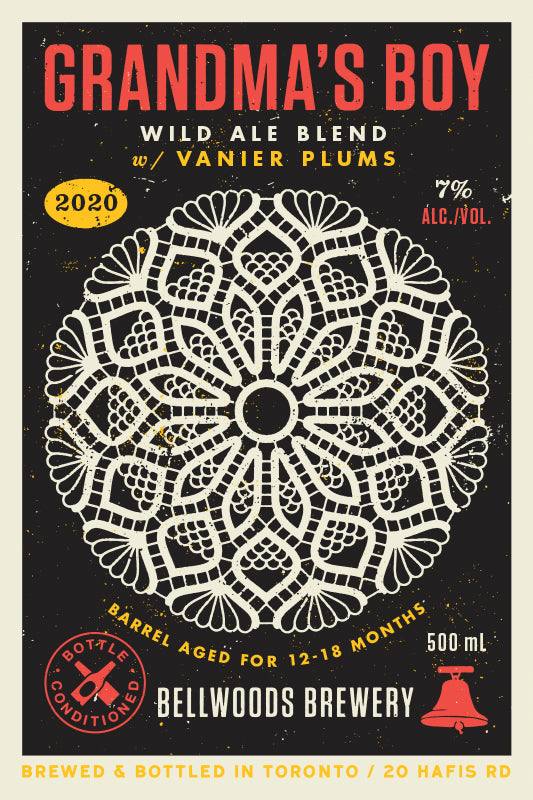 Grandma’s Boy is a wild ale blend, aged in oak foeders for the better part of a year. Defined by firm acidity, refined brett character, and spritzy carbonation, it’s a beer that balances stone fruit flavour with soft minerality.
