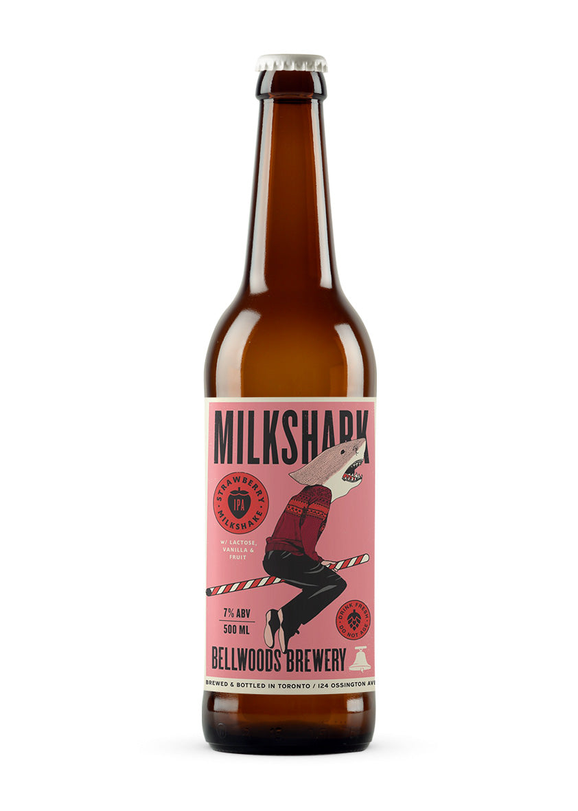 This heavily dry-hopped Milkshake-style IPA was brewed with lactose sugar and apple pectin, and was conditioned on vanilla and a huge amount of strawberry puree.