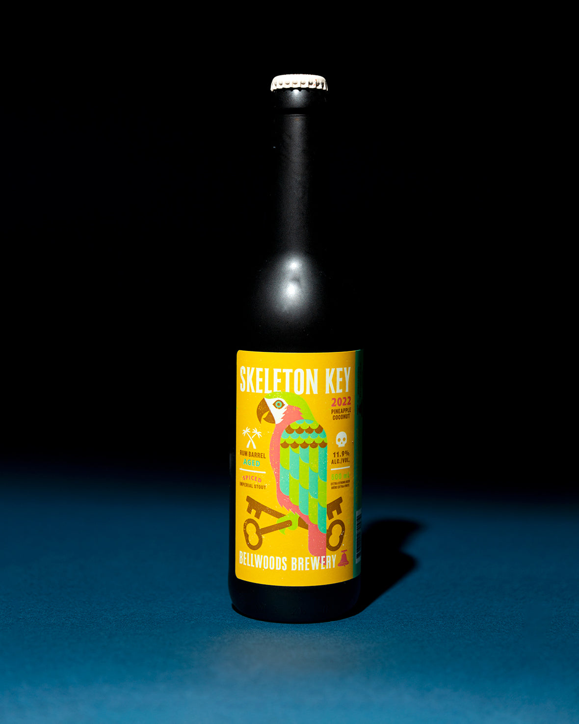 Skeleton Key is an imperial stout aged for just over a year in rum barrels, with a mix of cinnamon, ginger, nutmeg, anise, cardamom, all spice, and vanilla. The resulting beer is an intense showcase of dark chocolate, caramelized malts, spirit barrel, and lively spices. This 2022 variant has been conditioned on pineapple and coconut.