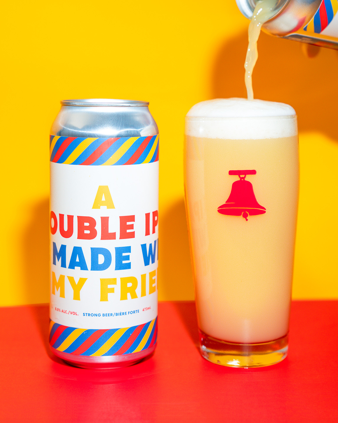 For this batch, we doubled up with All My Friends Beer Co to make a Double IPA that's pillowy and soft. It's our first collab with our fellow Ontario brewers, and has notes of Mango Lassi, strawberry lemonade, and maraschino cherries.
