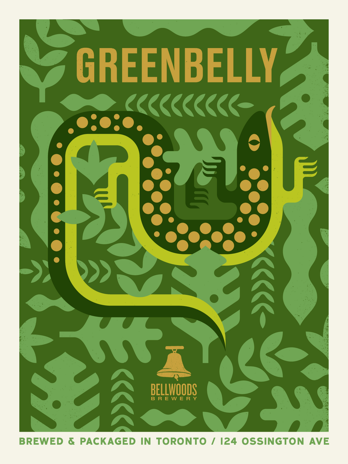 18" x 24" Greenbelly label art designed by Doublenaut and printed by Kid Icarus.