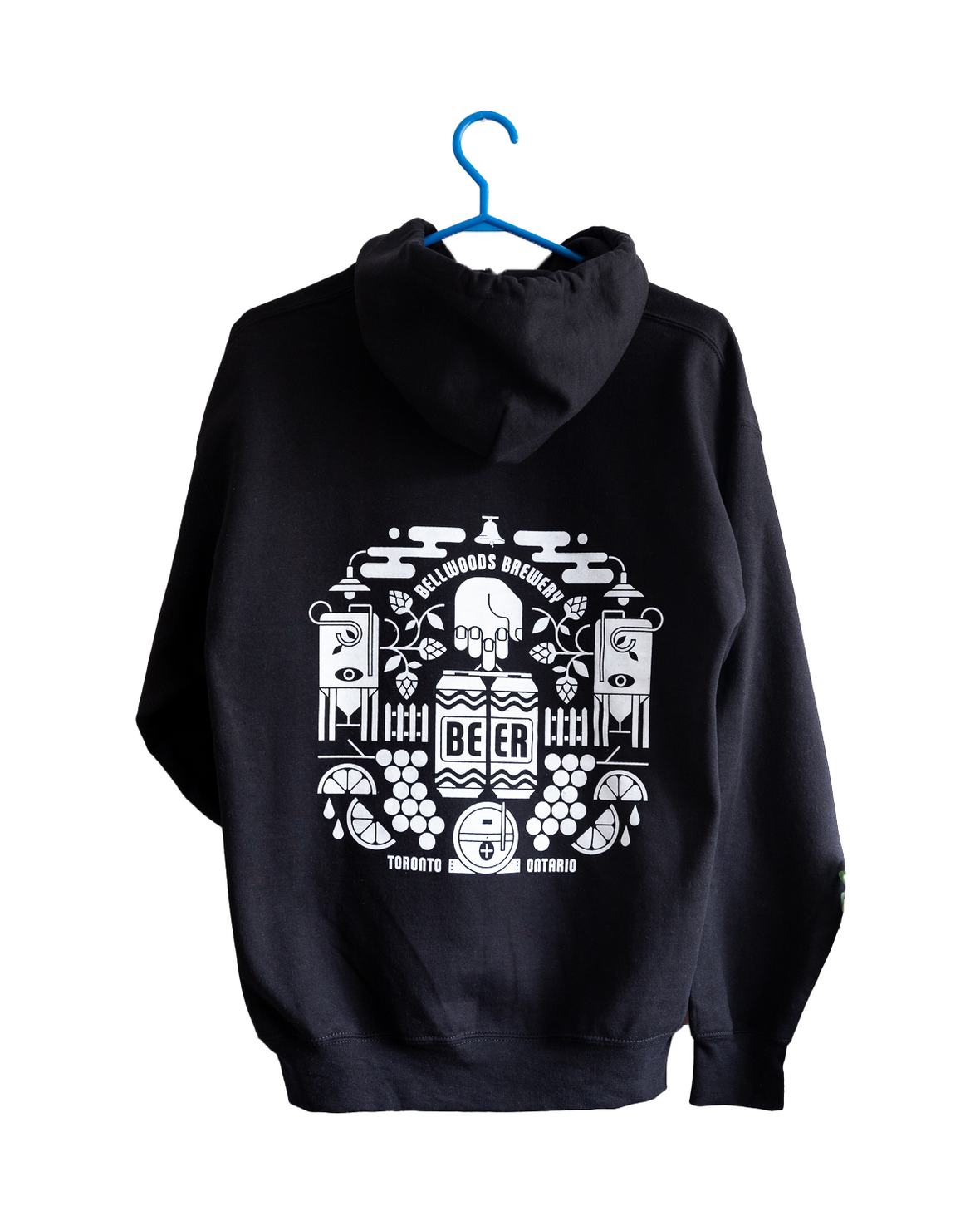 Medium weight hooded sweatshirt. 50% cotton / 50% polyester.