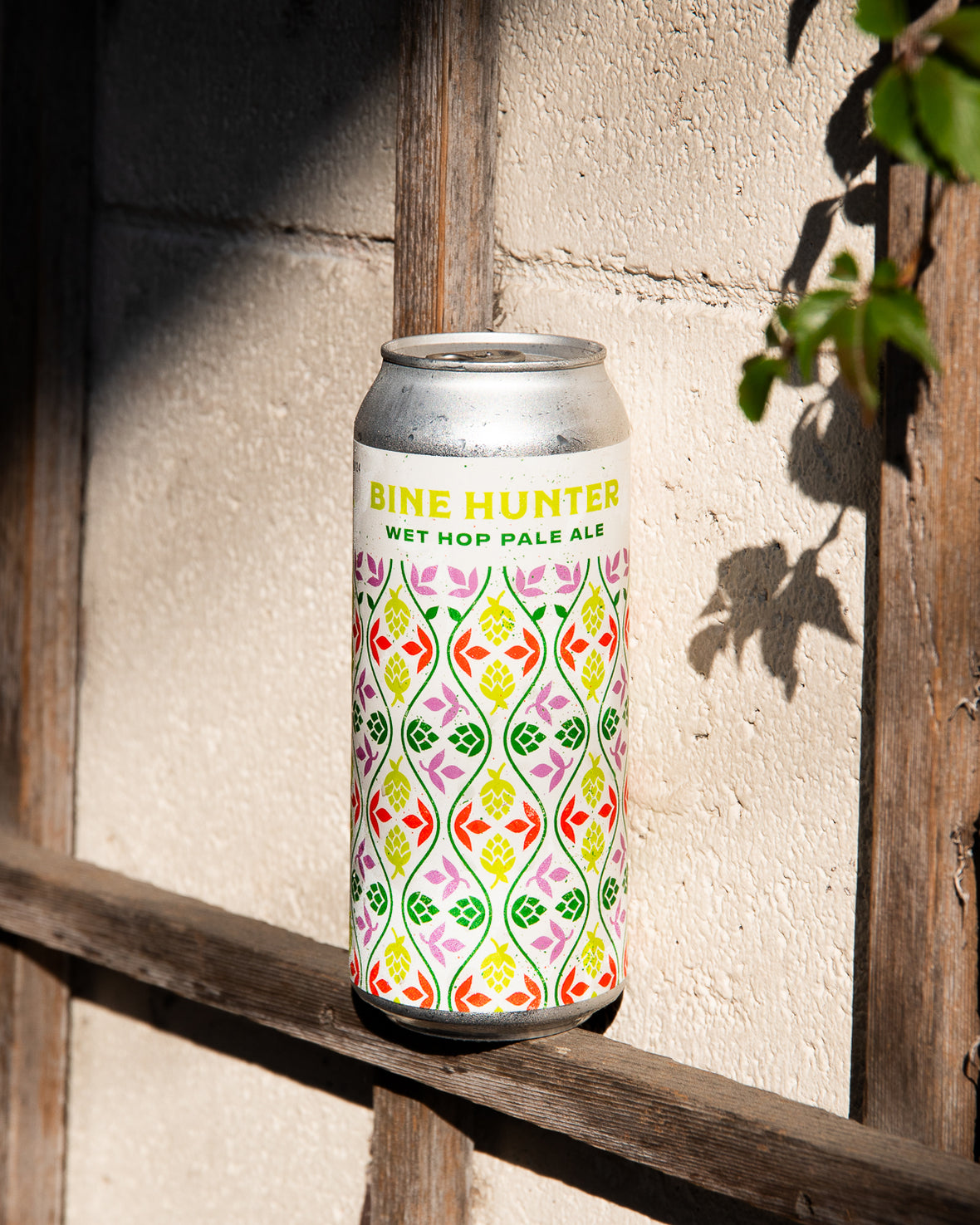 Bine Hunter's vibrant hop quality highlights notes of fuzzy peach, pear nectar, cola gummies, and fresh thyme.