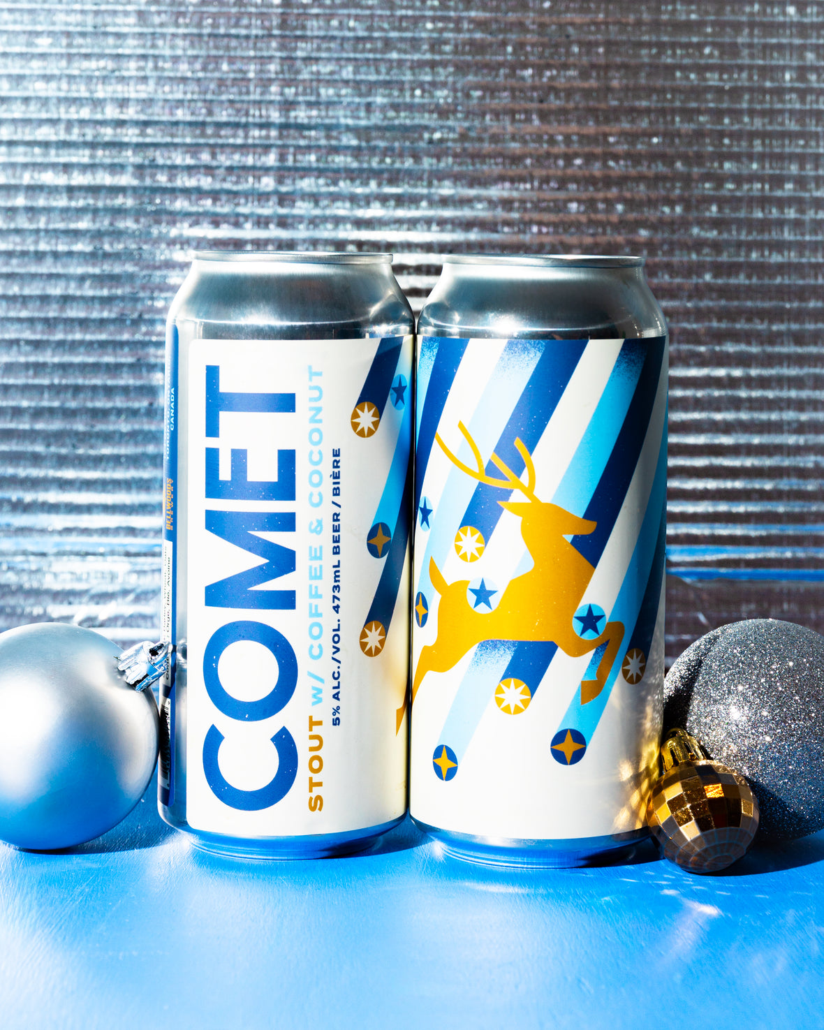 Comet is a celebratory beer released at the end of each year, brewed to encapsulate our favourite flavours of the season. The 2025 version is a stout with coffee and coconut: it's roasty, toasty, and lighter than years past at a gentle 5% ABV.