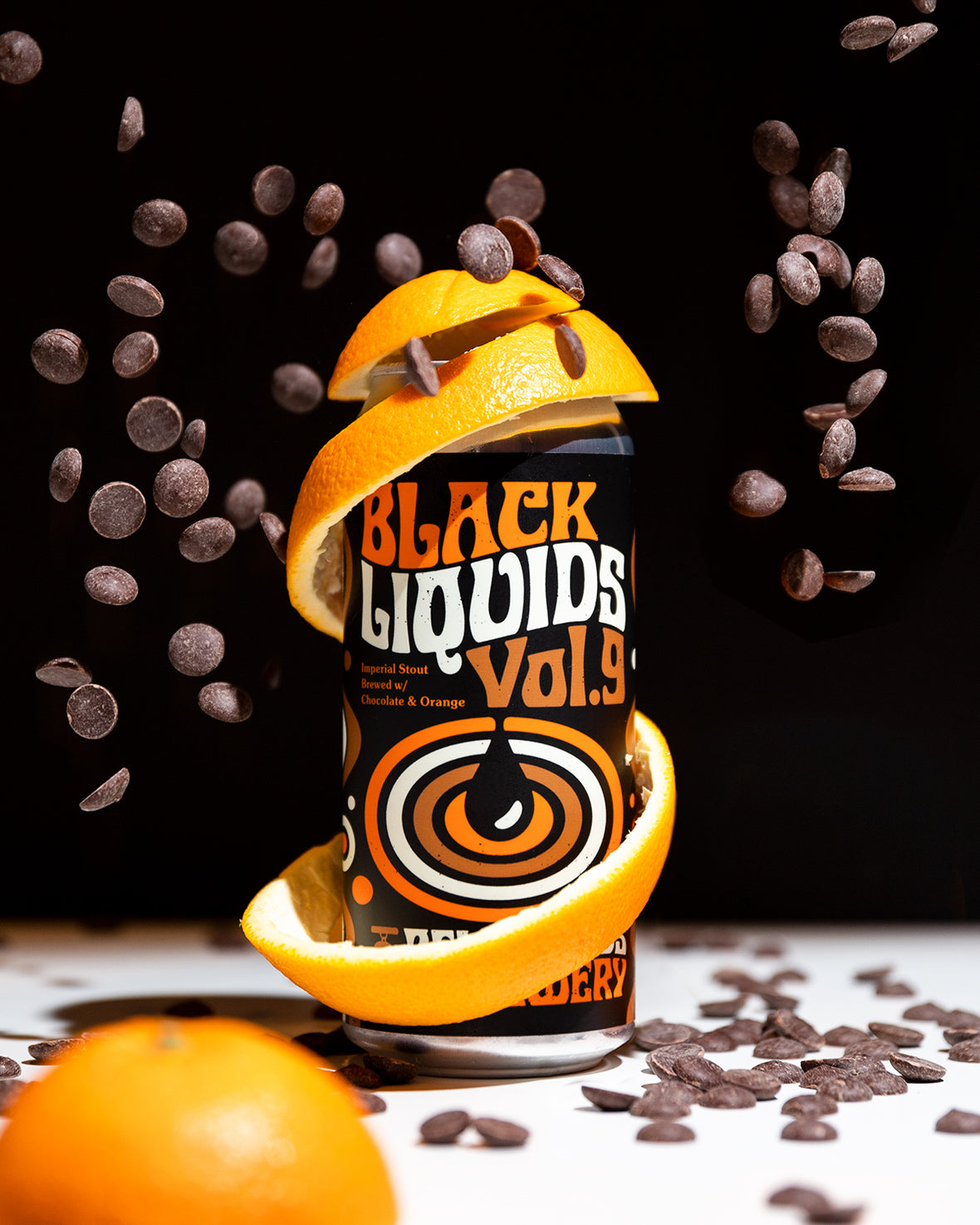 Volume 9: The latest volume in the Black Liquids series brings together the classic yet sophisticated combination of chocolate and oranges. The base beer received a generous dose of toasted cocoa nibs and was further conditioned on a big ol’ heap of orange peels — extracting the essence of the orange without the acidity in the name of keeping everything silky smooth. Does Black Liquids Vol. 9 bring forward fond memories of munching on a Terry's Chocolate Orange? Definitely. Did we melt several Terry’s Chocolate Oranges together in a pot in order to conduct a side-by-side taste comparison? Maybe later. 🤞