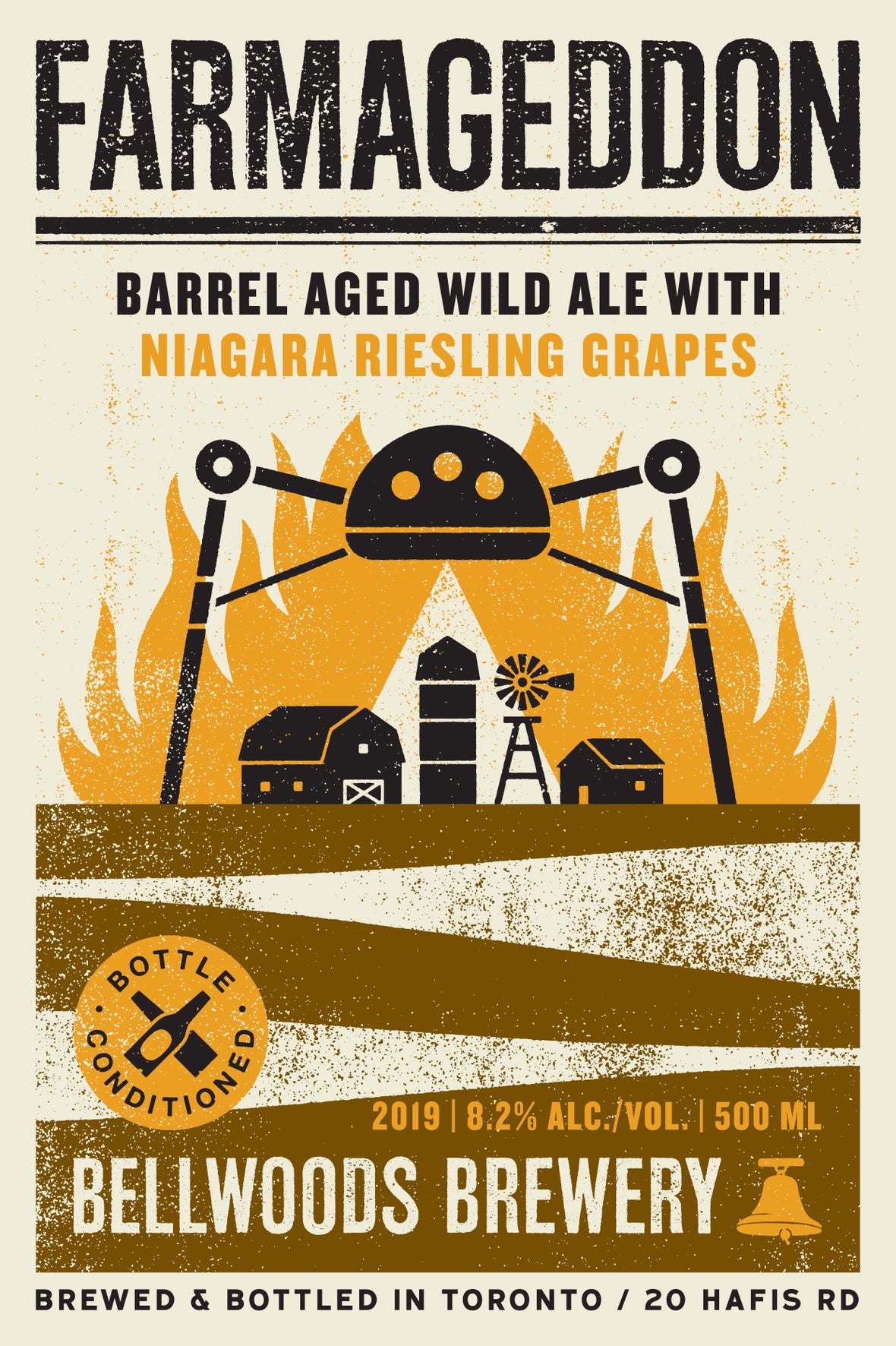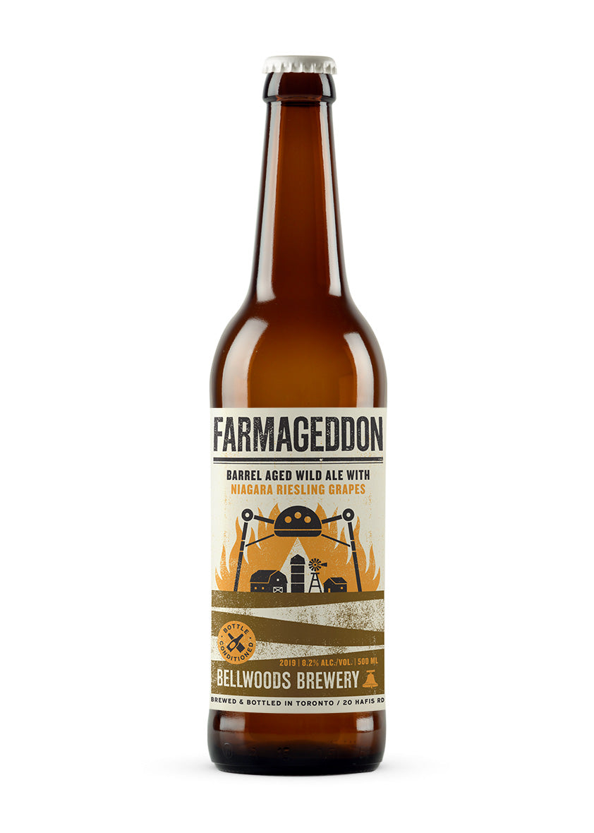 Farmageddon is our wild farmhouse ale that we've been brewing, blending, and aging for almost as many years as we've been open. The blending process allows us to maintain a common thread across batches, the aging adds nuanced layers, while the brett and bacteria work hard to create small idiosyncrasies in each release. It's a refined, effervescent, and delicious beer worthy of special occasions and idle weeknights.