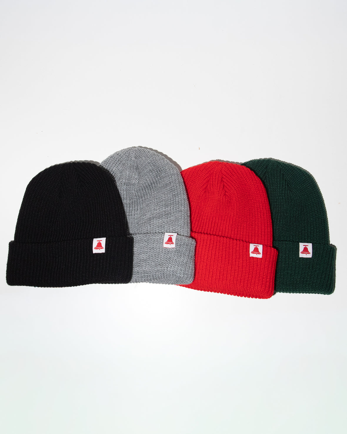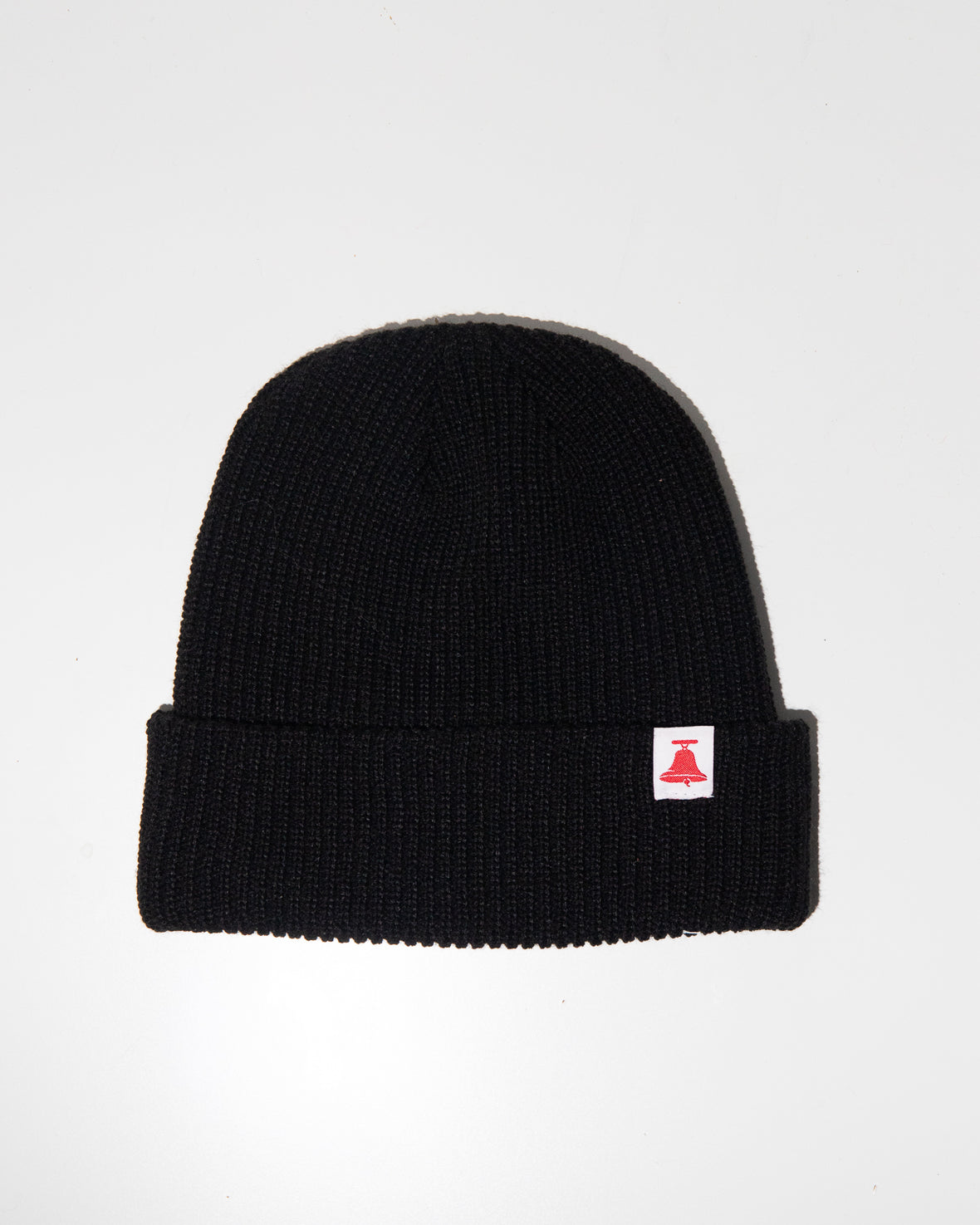 Unisex ribbed toque with a woven red bell label. Made in Canada.